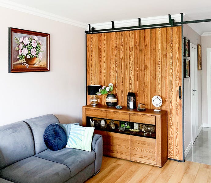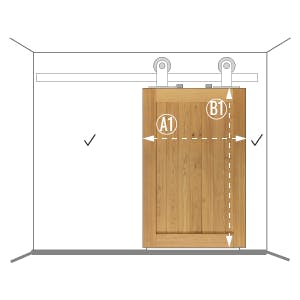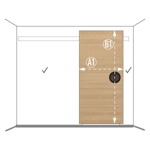 Tipp: Achten Sie darauf, dass die Tür Platz zum Gleiten haben muss, daher sollte die Breite der bestellten Tür an die Wand neben der Türöffnung passen, um sie in vollem Umfang leicht öffnen zu können.