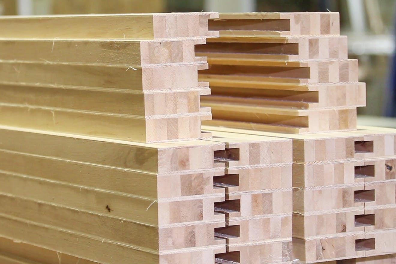 Wie funktioniert es? Wie Sie wahrscheinlich wissen, hat Holz viele Fasern, die in einer Platte in die gleiche Richtung verlaufen. Wenn wir drei Bretter verbinden und sie versetzt anordnen, stützen sich die Fasern gegenseitig und minimieren die Möglichkeit einer Verformung.