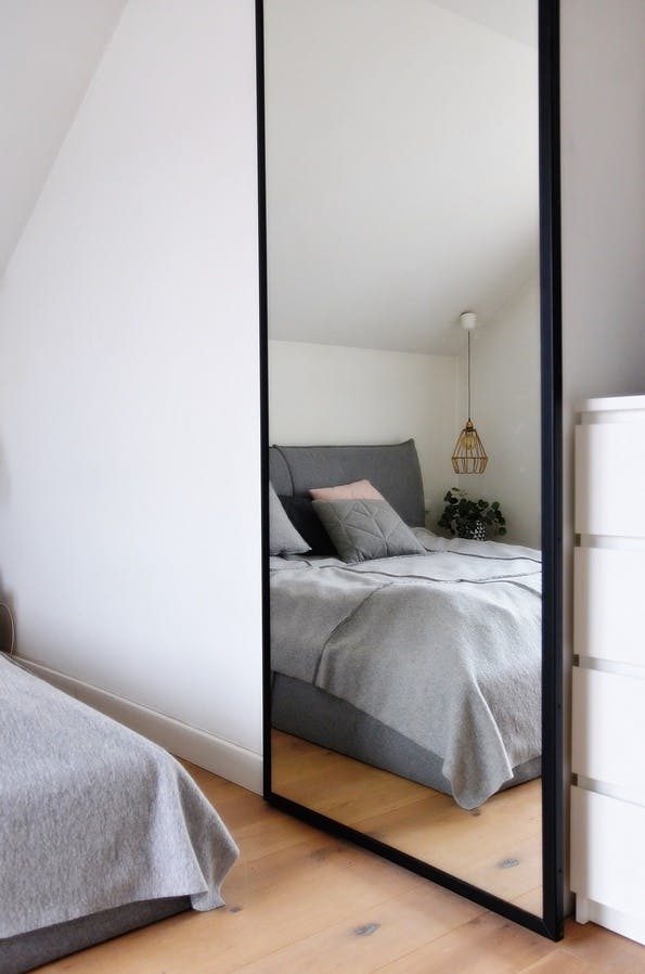 Was haben Spiegeltüren damit zu tun? Unser Gehirn ordnet die Helligkeit in einem Innenraum automatisch seiner Größe zu. Je heller das Innere ist, desto größer erscheint es uns. Wenn Sie also diesen Einrichtungstrick anwenden und das Licht in der Spiegelfläche reflektieren lassen, erzielen Sie einen spektakulären Aufhellungseffekt und der Raum gewinnt optisch ein paar wertvolle Quadratmeter dazu.